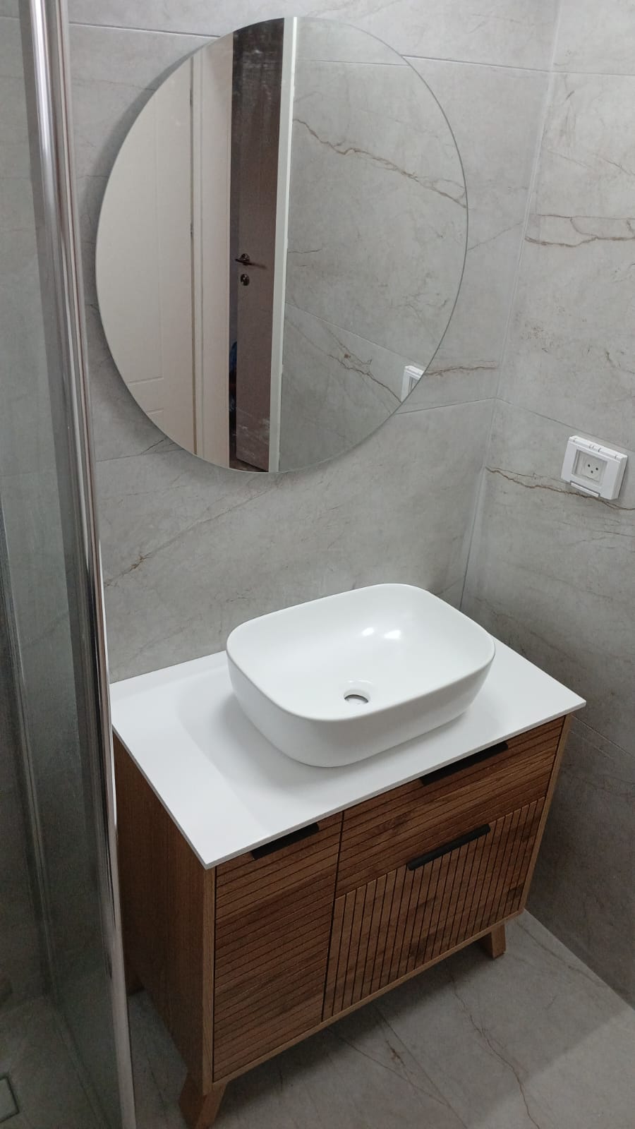 ארון אמבטיה עץ עם כיור מונח ניתן להזמין בגדלים שונים בייצור אישי