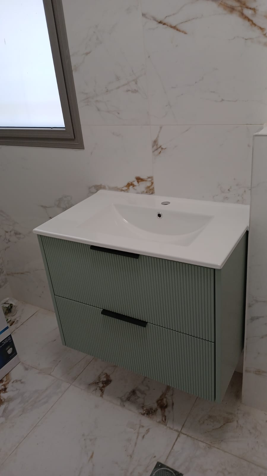 ארון אמבטיה ירקרק עם כיור אינטגרלי