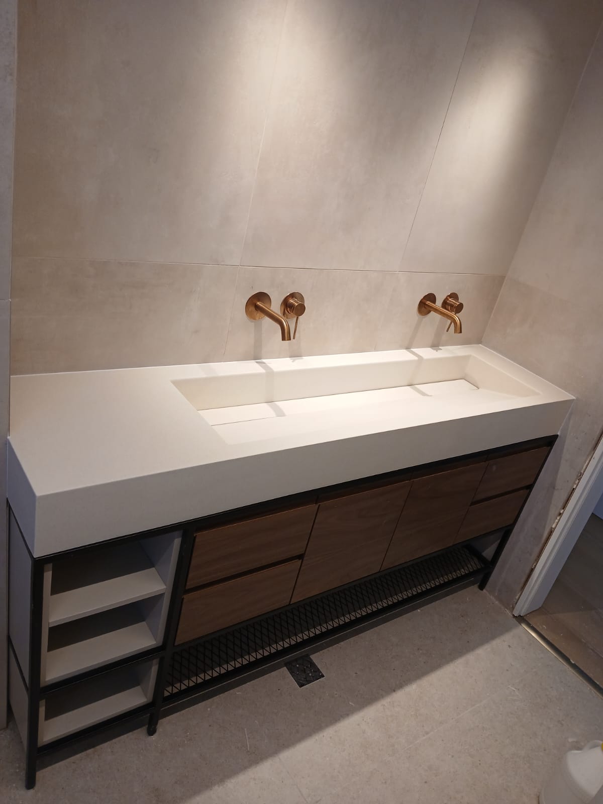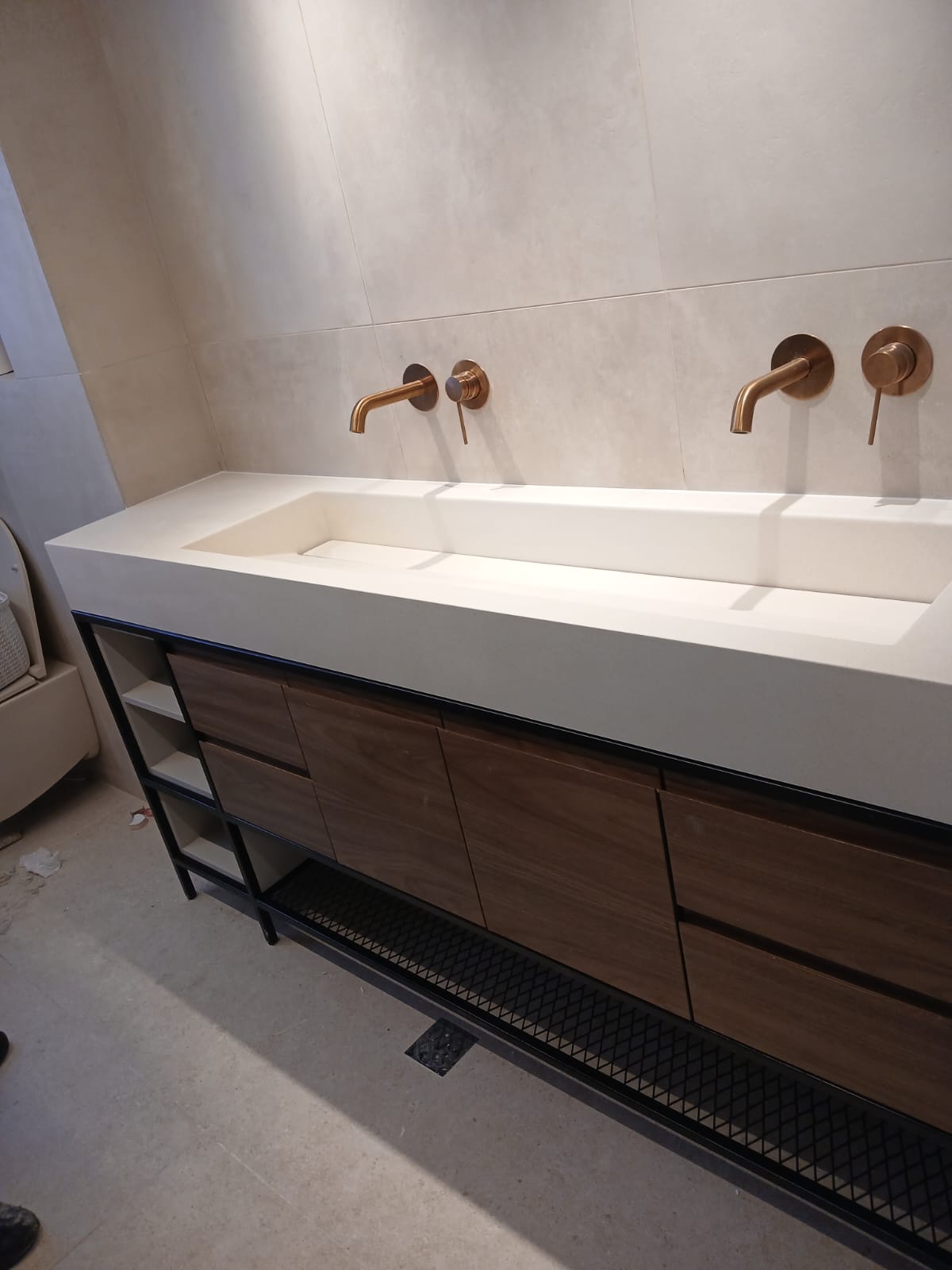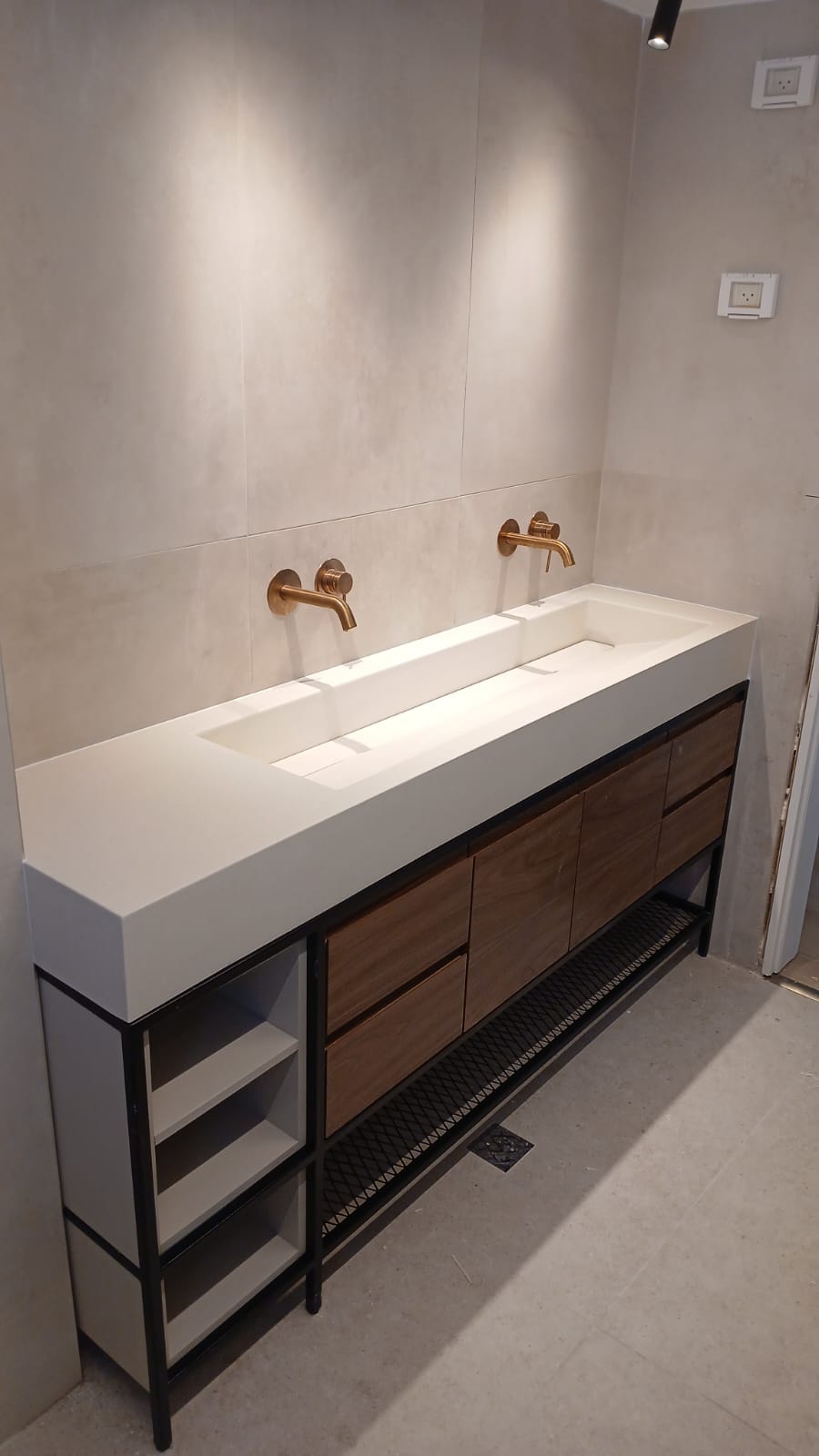 ארון אבטיה גדול עם כיור רחב ו2 ברזלים ומדפי איחסון