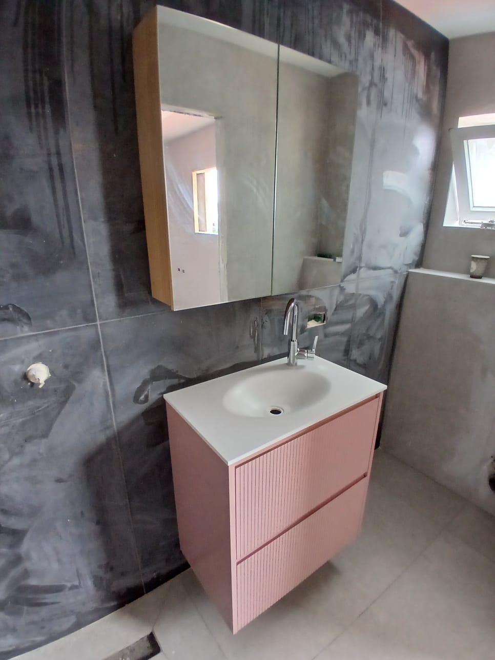 ארון אמבטיה ורוד עם מראה